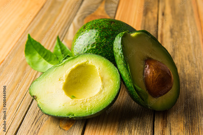 Fresh avocado fruit on a wooden board. The concept of healthy eating. Food photography