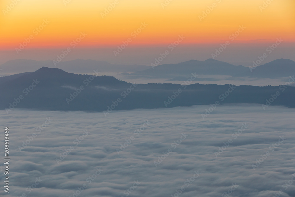 Landscape with the mist at Pha Tung mountain in sunrise time, Chiang Rai Province, Thailand