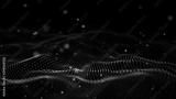 Data technology illustration. Abstract futuristic background. Wave with connecting dots and lines on dark background. Wave of particles.