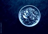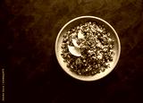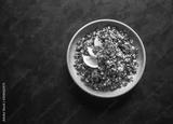 Tabbouleh salad with couscous in a bowl on the black table. Traditional middle eastern or arab dish.