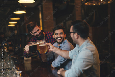 The guys in the pub are drinking beer