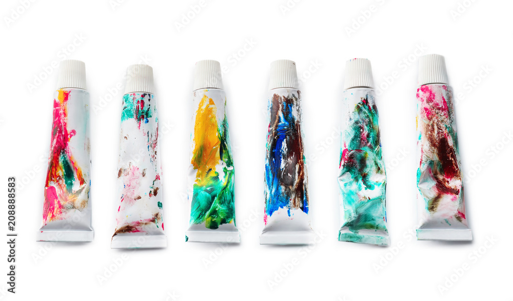 Tubes with color paints on white background