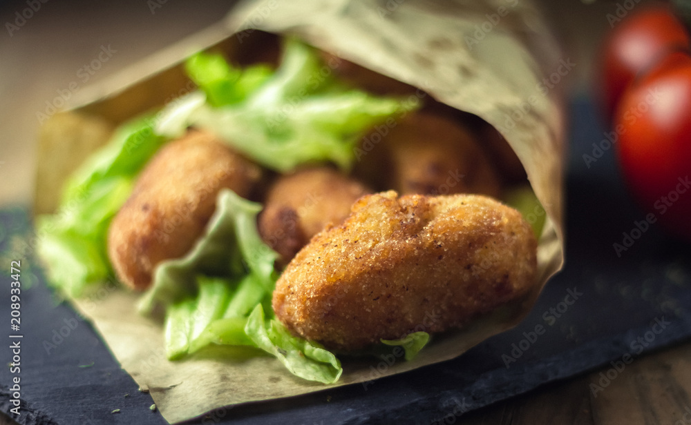 ham croquettes and cooked with vegetables in the background