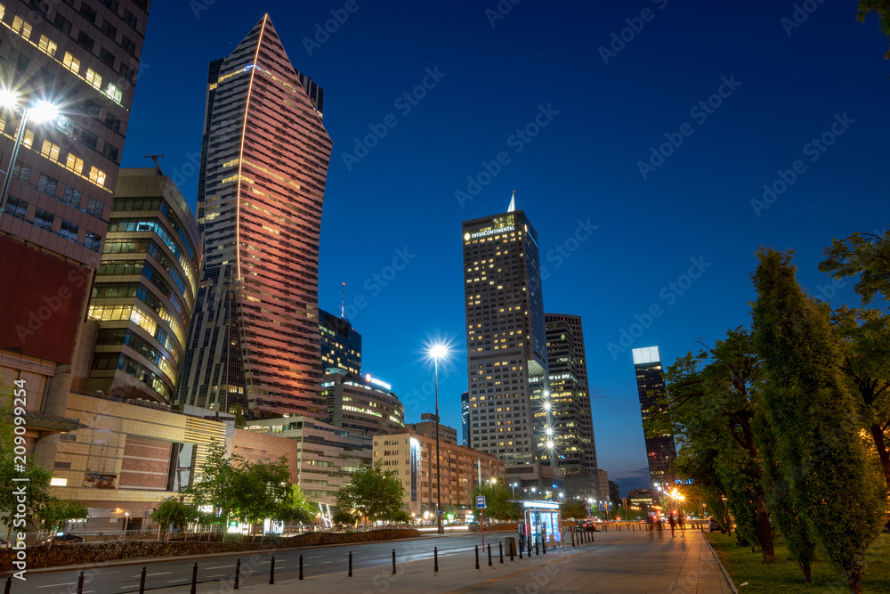 Warsaw, Poland, April 2018:Panoramic view of Warsaw downtown during the night