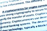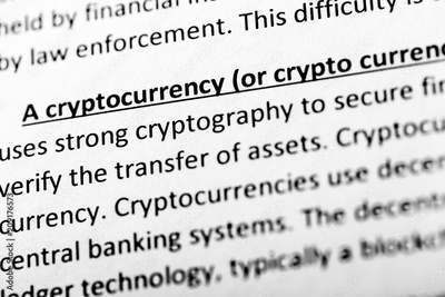 Cryptocurrency explanation or description in dictionary or article. Close up with focus on cryptocurrency.