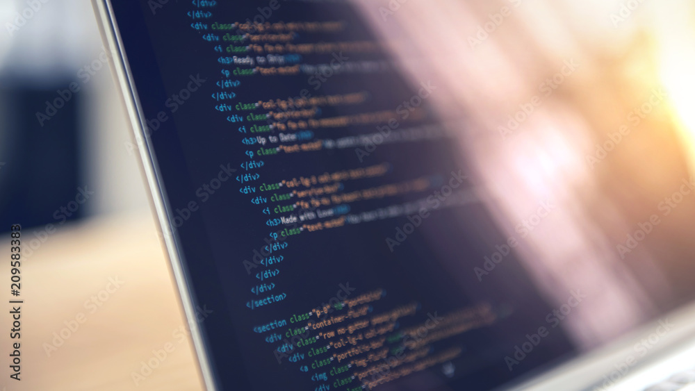 Closeup coding html and programming on screen laptop, development web, developer.