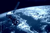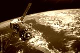 Spaceship piloted by astronauts in the orbit of planet Earth land and ocean, peninsula. Elements of this image furnished by NASA.
