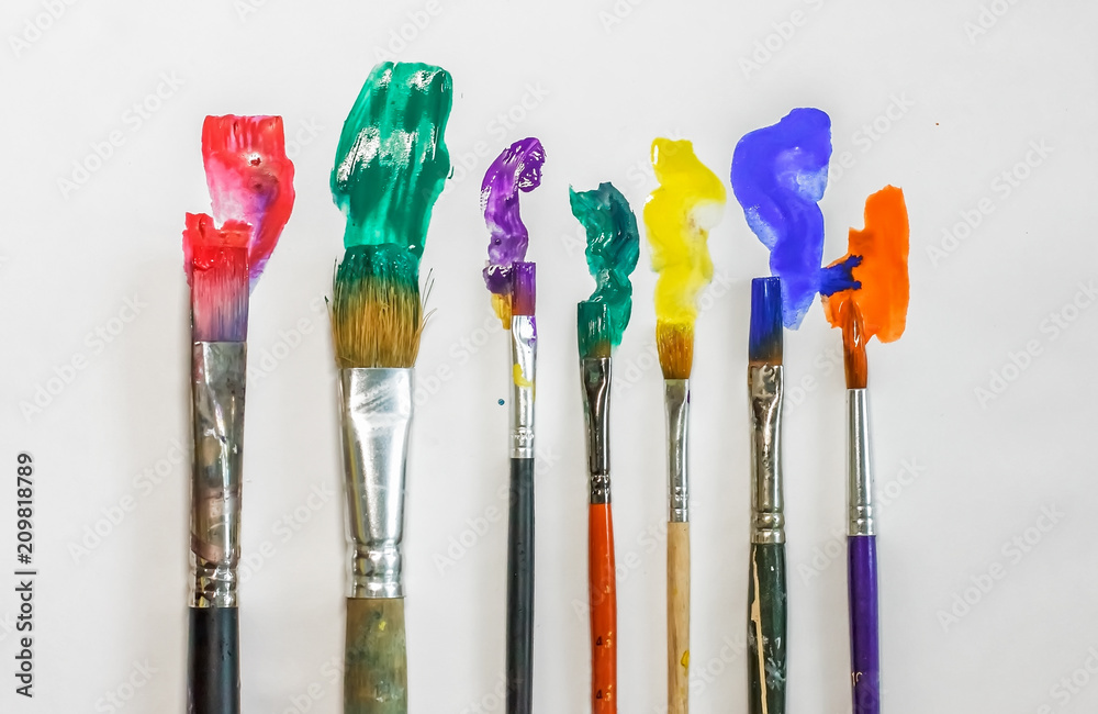 DIFFERENT ARTISTIC BRUSHES ON THE WHITE BACKGROUND,