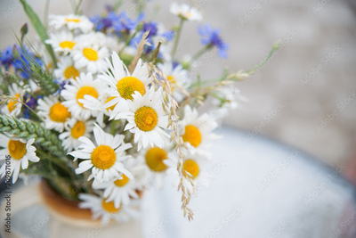 Midsummer in Latvia: celebration of Ligo in june decorating home with field flower bouquet