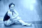 Young Asian attractive woman posing on yoga mat near swimming pool. Pilates workout and healthy lifestyle concepts. International yoga day