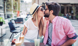 Romantic couple at the meeting in a cafe. Dating, love, relationships