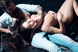 Unleashed desire. No rules for them. Moments of intimacy. Man and woman hug while lying in bed. Sensual couple in love