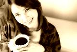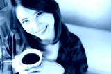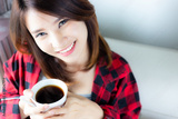 Attractive beautiful woman is feeling fresh in the holiday morning when charming beautiful women drinks back coffee in living room at house with smiley face. Beautiful asian girl feel happy, relaxing