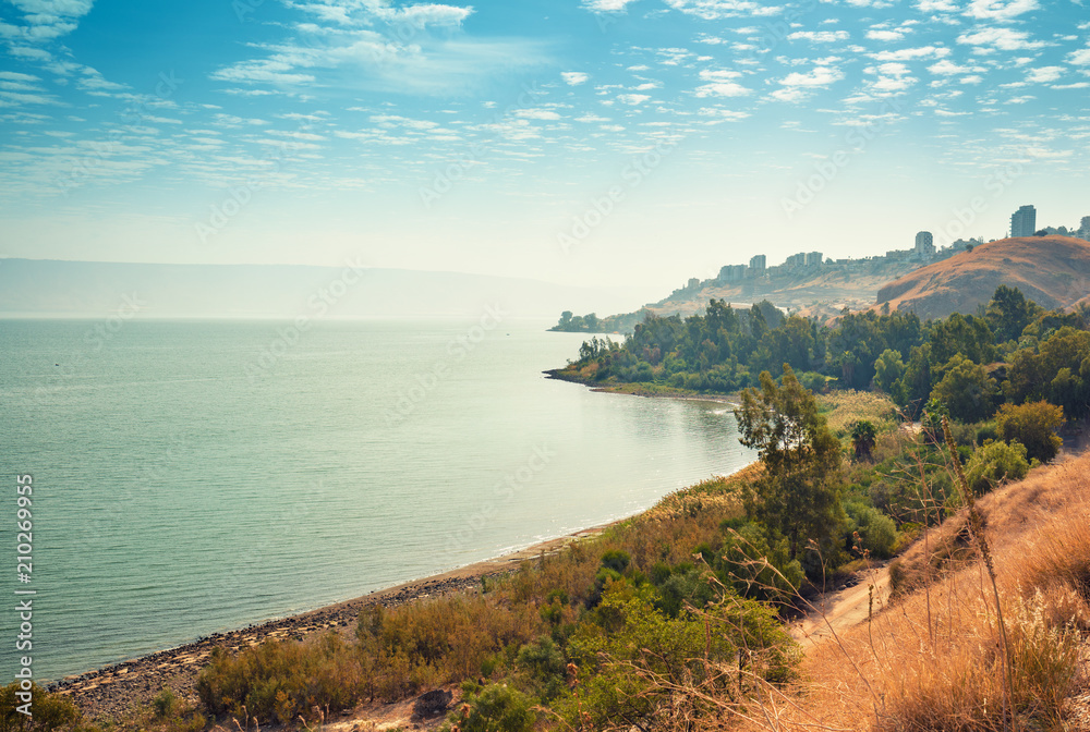 Skyline, view of Tiberias in Galilee, The Sea of Galilee, Lake of Gennesaret, Israel
