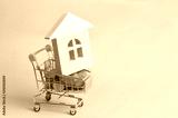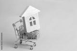 Property investment and house mortgage financial concept. buying, renting and selling apartments. real estate. Coins and a wooden house in a shopping basket. credit