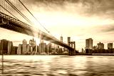 Sunset over Brooklyn Bridge in New York City