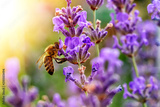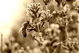 The bee pollinates the lavender flowers. Plant decay with insects.