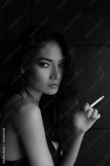 Portrait charming beautiful confident woman. Attractive beautiful sexy women holds, smoke cigarette. Gorgeous woman has beautiful face and nice skin. Beautiful asian woman gets successful of business