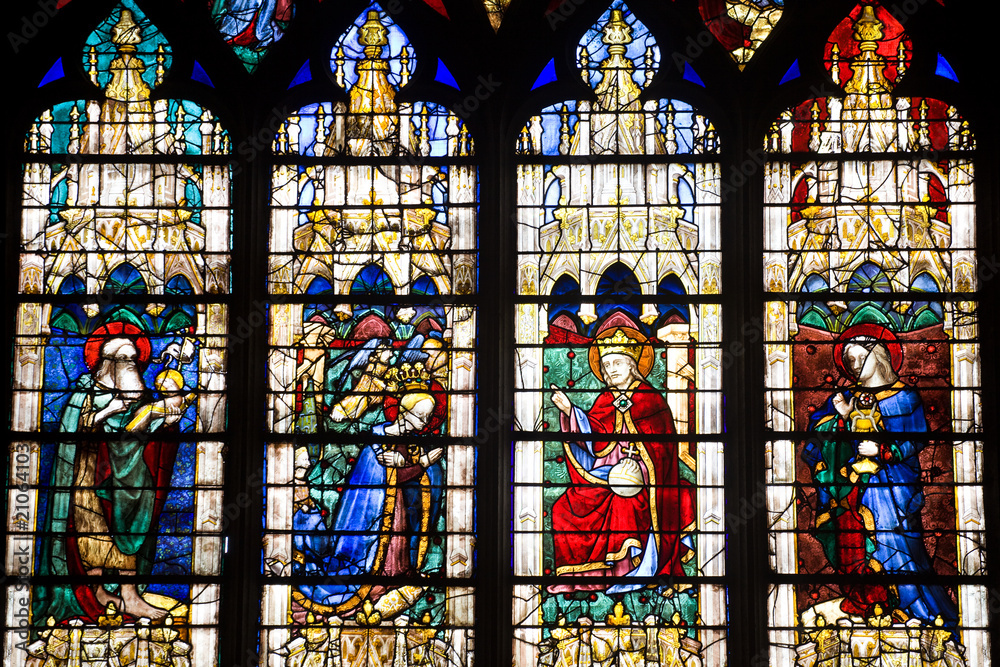 Stained glasses detail from Chartres Cathedral, France