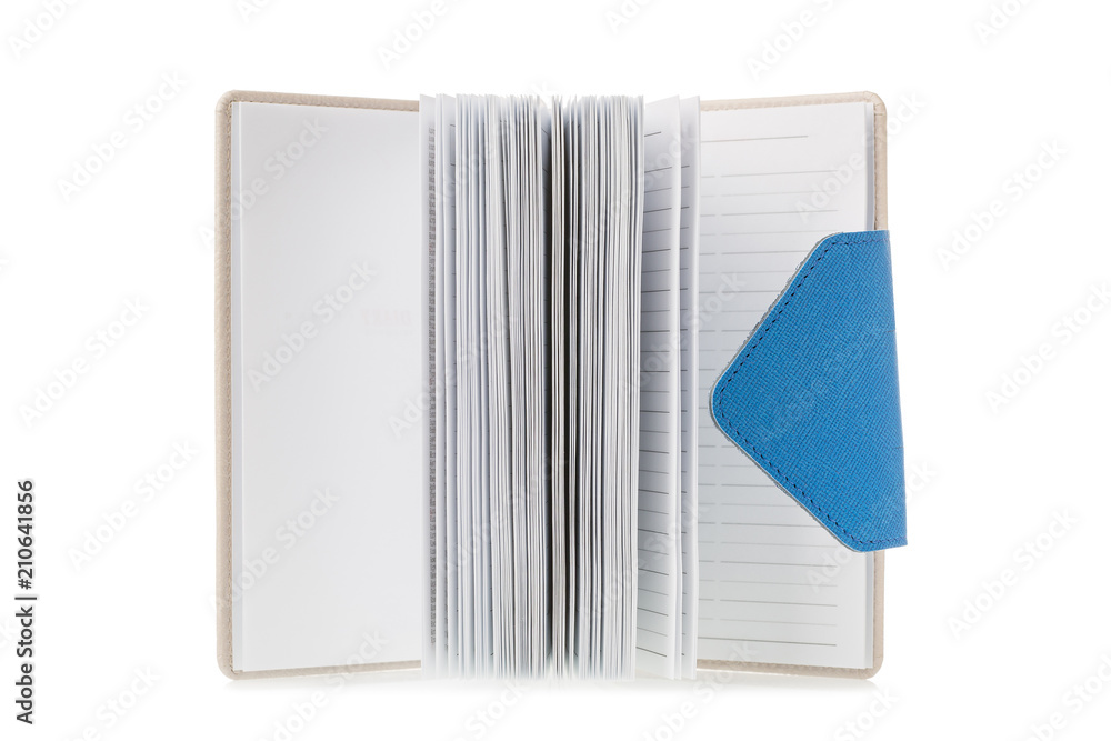 Opened notebook isolated on white background.