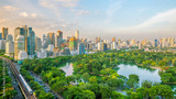 Bangkok city skyline with Lumpini park from top view in Thailand