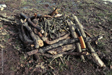Tinder And Hand Saw On Layered Firewood In Nebrodi Park, Sicily