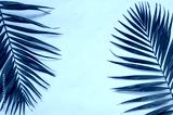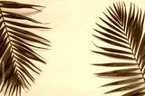 Tropical palm leaves border frame isolated on pastel yellow background isolated