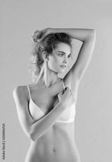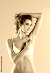 Close-up Beauty Portrait Model Woman smooth Armpits. Happy Woman with smooth underarms