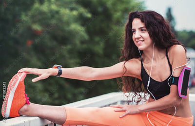 Young woman stretching her body after training. Fitness, sport, lifestyle concept