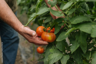 The farmer controls the growth of tomatoes in the greenhouse