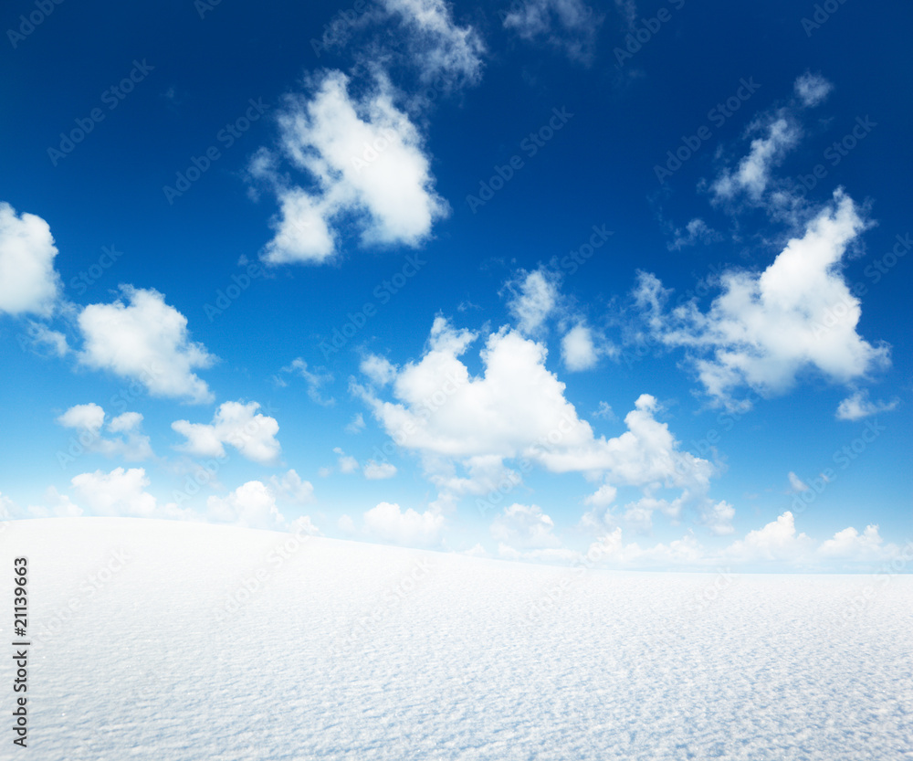 field of winter snow and perfect blue sky