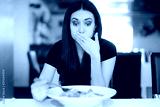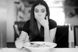 Woman Feeling Sick While Eating Bad Food in a Restaurant