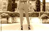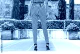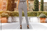 Partial seen woman body walking on the street or terrace concrete path. Fashion, lifestyle and model concept.