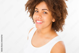 Beautiful young african american woman isolated on white background. Copy space. Mock up. Skin care, spa and make up concept. Summer time. Afro girl curly hair