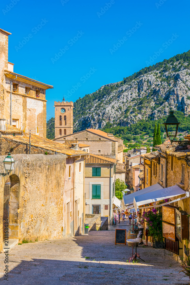 Aerial view of Santa Maria dels Angels church at Pollenca, Mallorca, Spain