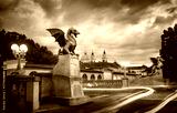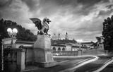 Dragon bridge (Zmajski most), symbol of Ljubljana, capital of Slovenia, Europe. Long exposure. Time lapse.
