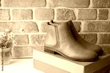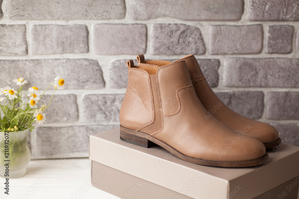 Close-up view of the stylish and elegant leather women's shoes on a shoe box.