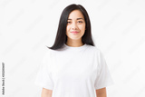 Young asian girl isolated on white background. Copy space. Mock up. Summer woman clothes blank template white t shirt.