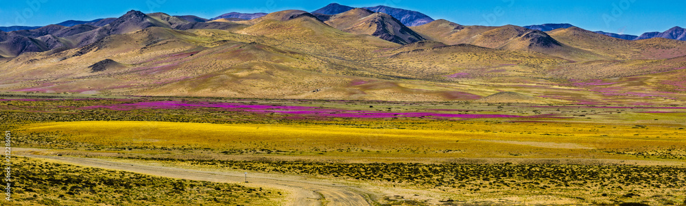 From time to time rain comes to Atacama Desert, when that happens thousands of flowers grow along the desert from seeds that are from hundreds of years ago, amazing the "Desierto Florido" phenomenom