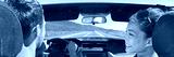 Road trip vacation couple driving convertible car on summer travel holiday fun. Laughing Asian girl with man driver. Banner panorama.