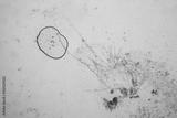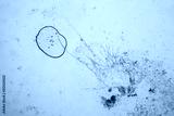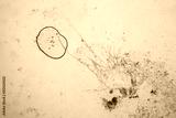 Fresh pond water plankton and algae at the microscope. Dead copepod details