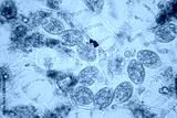 Fresh pond water plankton and algae at the microscope. Spirogyra
