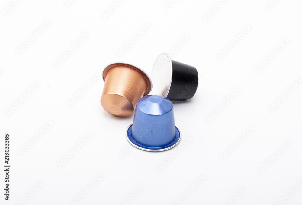 coffee capsules on white background