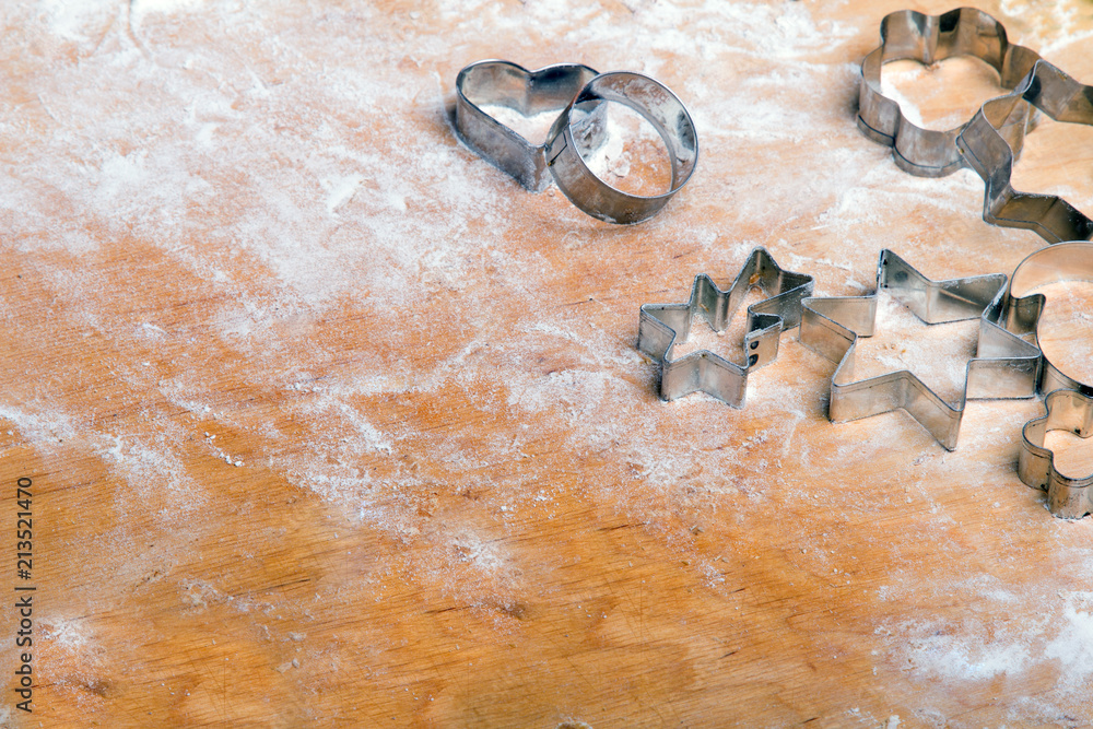 Preparing Christmas cookies. Cookies ingredients, copy space.