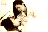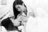 Beautiful woman get high temperature, fever or sick. She stay in bed and feel dizzy, headache, shivering. Friend keep vigil over a sick, look after friend. She use fever thermometer for checking fever