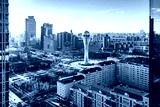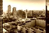 Sunset view towards Bayterek tower and hous of ministries in Astana Kazakhstan on a clear day