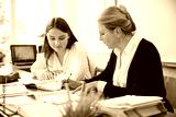 College Student Has Individual Tuition From Teacher In Library