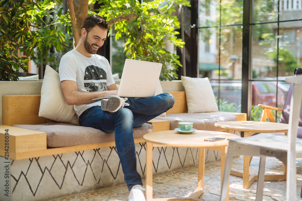 Young student enjoys a morning coffee