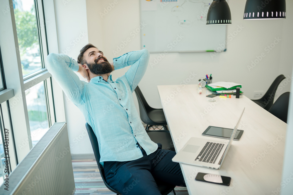 Young businessman rests in his office