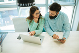 It's a difficult job at work. Two young businessmen work on a difficult project.